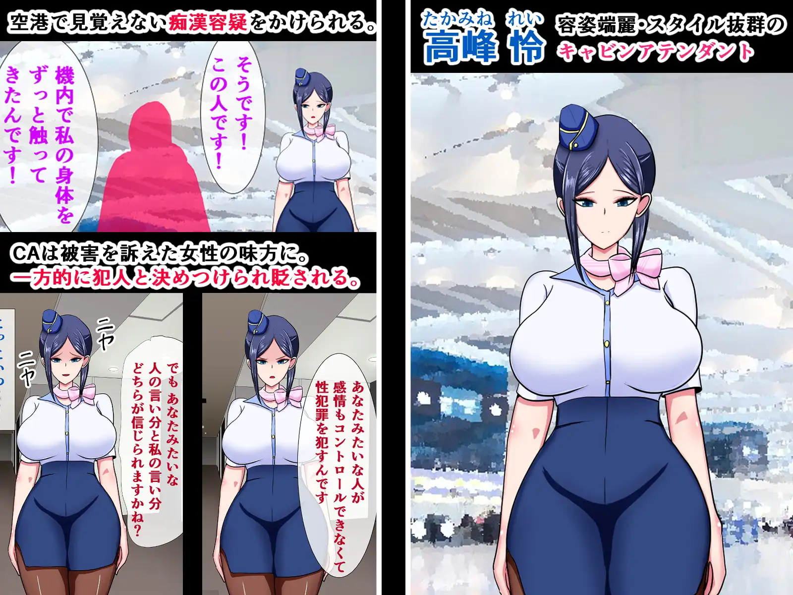 主人公の事を痴漢だと決めつけてビンタまでしてくる性格が終わっている高飛車CAに仕返しをする内容で、序盤は主人公を馬鹿にして見下している態度を隠しもしません!!